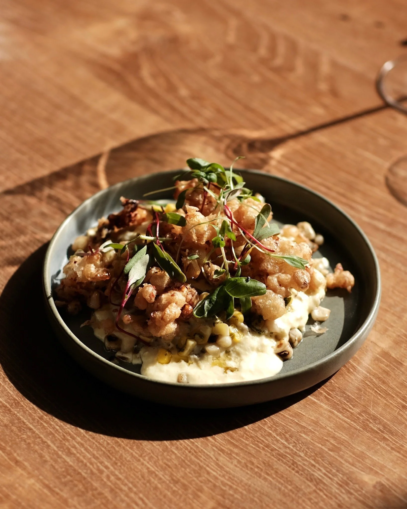 A vertical farm lives inside our restaurant, harvesting fresh, pesticide free greens daily for our kitchen.